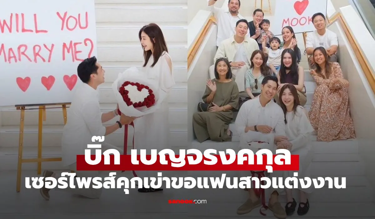 ภาพหวาน บิ๊ก เบญจรงคกุล คุกเข่าขอแฟนสาวแต่งงาน “แอริณ” ต้อนรับว่าที่น้องสะใภ้