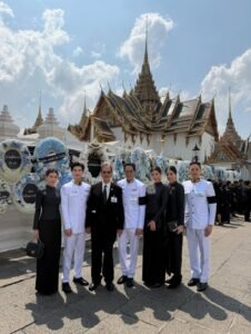 ความงดงามในชุดไทยจิตรลดาและชุดขอเฝ้าไว้ทุกข์ สมาชิกครอบครัวตระกูลทองเจือ ในชุดไว้ทุกข์ที่ถูกต้องตามระเบียบและงดงาม โดย “แม่เจ็ง วิไลลักษณ์” และลูกสาว “น้องเซย่า ทองเจือ” สวมชุดไทยจิตรลดาแขนยาวสีดำสนิท ขณะที่ทางฝั่งสุภาพบุรุษอย่าง “พ่อพีท ทองเจือ” และลูกชายคนเล็ก “น้องโรเตอร์ ทองเจือ” มาในชุดขอเฝ้าไว้ทุกข์ (ชุดข้าราชการกึ่งสากลขาว-ดำ)
